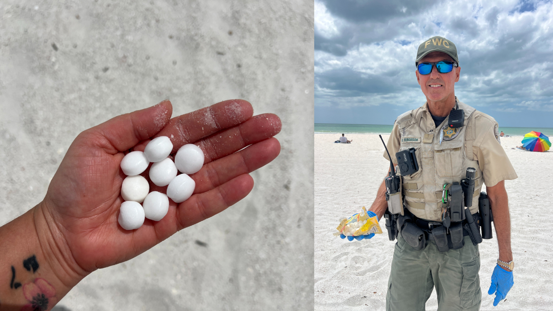Officer Ferguson responded to the beach on Monday afternoon after the FWC got a tip from an anonymous caller. He told 10 Tampa Bay News that someone likely placed the mothballs in an effort to deter birds and other wildlife.