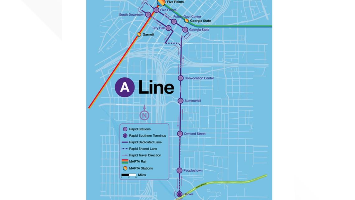 Rapid-A will be a five-mile roundtrip line that connects several Downtown Atlanta stops to the southeast Beltline, going down Hank Aaron Drive to University Avenue.