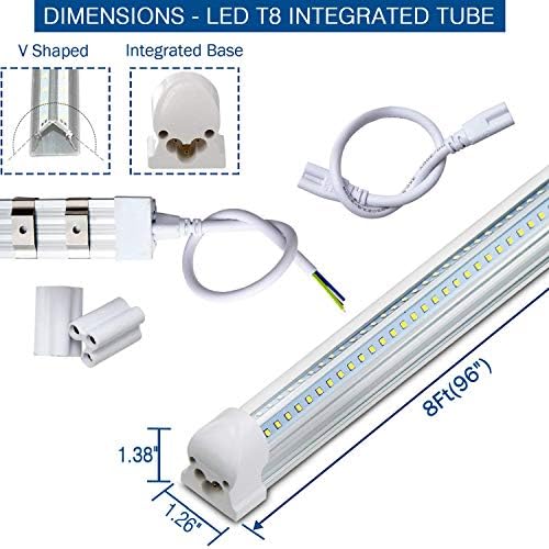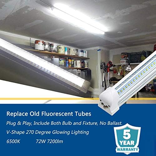 【SCIENTIFIC DESIGN】These dual row V shape 8′ led light fixtures give 270 degree lighting with no wasted light, about 40% more lumens than standard flat led tubes, especially perfect for garage,warehouse, shops lighting.