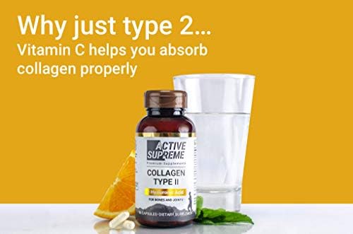 100% SATISFACTION: Your joints and bones deserve the highest quality collagen type 2 complex. We are proud to offer you premium collagen hydrolyzed Type 2 Capsules with Vitamin C and Hyaluronic Acid. You can feel safe while buying Active Supreme collagen type 2 capsules.