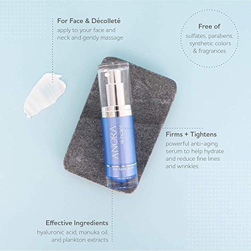Anora Skincare Anti-Aging Serum is formulated with plant, fruit, and plankton extracts to help diminish the appearance of stubborn fine lines and wrinkles with botulinum toxin-like effects without the use of injections. This anti-aging serum contains a purified synergistic enzyme concentrate to help repair cellular DNA damage caused by exposure to UV rays, while also delivering intense hydrating, cooling, and soothing effects to your skin.