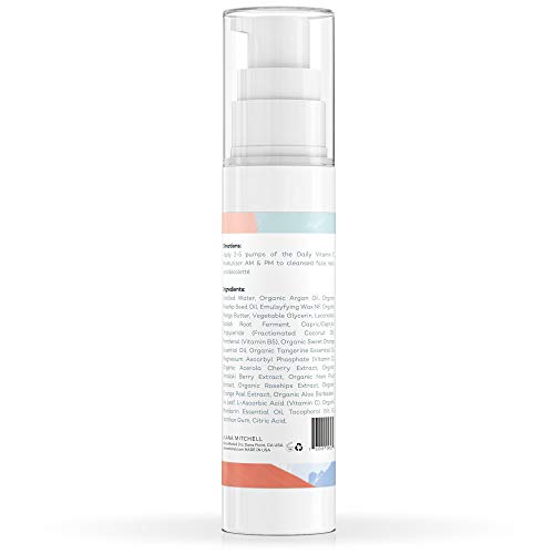 The Daily Vitamin C Moisturizer is 99% NATURAL, PARABEN-FREE, ARTIFICIAL FRAGRANCE-FREE, AND CRUELTY-FREE, so you can feel good about what you’re putting on your skin. It is ideal for ALL SKIN TYPES, but especially for dry, combination, and sensitive skin. It contains ORGANIC INGREDIENTS such as organic argan oil and organic acerola cherry extract.