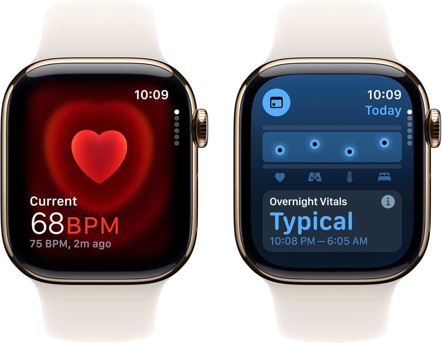 PRODUCTS OVERVIEW Meet Apple Watch Series 10. A bigger display with more screen area and a thinner, lighter design. Get advanced fitness and health features with Sleep Apnea Notifications, plus faster charging. KEY FEATURES WHY APPLE WATCH SERIES 10—Bigger display with up to 30 percent more screen area.² A thinner, lighter, and more comfortable design.² Advanced health and fitness features provide invaluable insights.³ Safety features connect you to help when you need it.⁴ Faster charging gives you 80 percent battery in about 30 minutes.⁵ ADVANCED HEALTH INSIGHTS—Take an ECG⁶ anytime. Get notifications if you have high or low heart rate or an irregular heart rhythm.⁷ Understand your menstrual cycle and get retrospective ovulation estimates.⁸ See overnight health metrics like heart rate, respiratory rate, and more with the Vitals app.⁹ Track sleep and get notifications if signs of sleep apnea are detected.¹ A POWERFUL FITNESS PARTNER—Measure all the ways you move with Activity Rings, which are customizable to match your lifestyle. Get advanced metrics for a range of workouts with the Workout app. Track the intensity of your workouts with training load. Use depth and water temperature sensors for your aquatic adventures. And Apple Watch comes with three months of Apple Fitness+ free.¹⁰ STAY CONNECTED—Send a text, take a call, listen to music and podcasts, use Siri, and get notifications on the go. Apple Watch Series 10 (GPS) works with your iPhone or Wi-Fi to keep you connected. INNOVATIVE SAFETY FEATURES—Fall Detection¹¹ and Crash Detection can connect you with emergency services in the event of a hard fall or a severe car crash. Emergency SOS lets you call for help with the press of a button.⁴ Check In automatically notifies a loved one when you’ve arrived at a your destination.¹² INCREDIBLE DURABILITY—Crack resistant and IP6X-certified dust resistant. With 50m water resistance.¹³ CARBON NEUTRAL—Configure any Apple Watch Series 10 case material or finish to