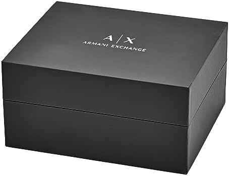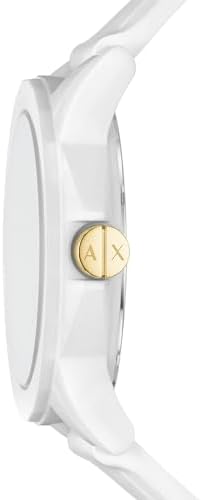Armani Exchange’s gift set includes a 40mm watch featuring a matte white dial with gold-tone stick indexes and inner seconds track, three-hand movement and white silicone strap with a debossed logo; paired with a white silicone luggage tag featuring a gold-tone logo.