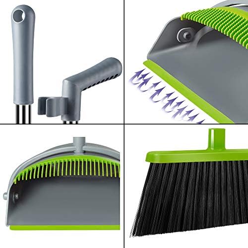 [Self-Cleaning Dustpan Teeth] – Built in scraper and comb/Teeth for easy to Clean Broom into Dustpan , Clean Pet Hair and Human Hair with one Pull on the Teeth. The rubber lip of the dust pan is flush with the floor and the teeth clean out the bristles easily.