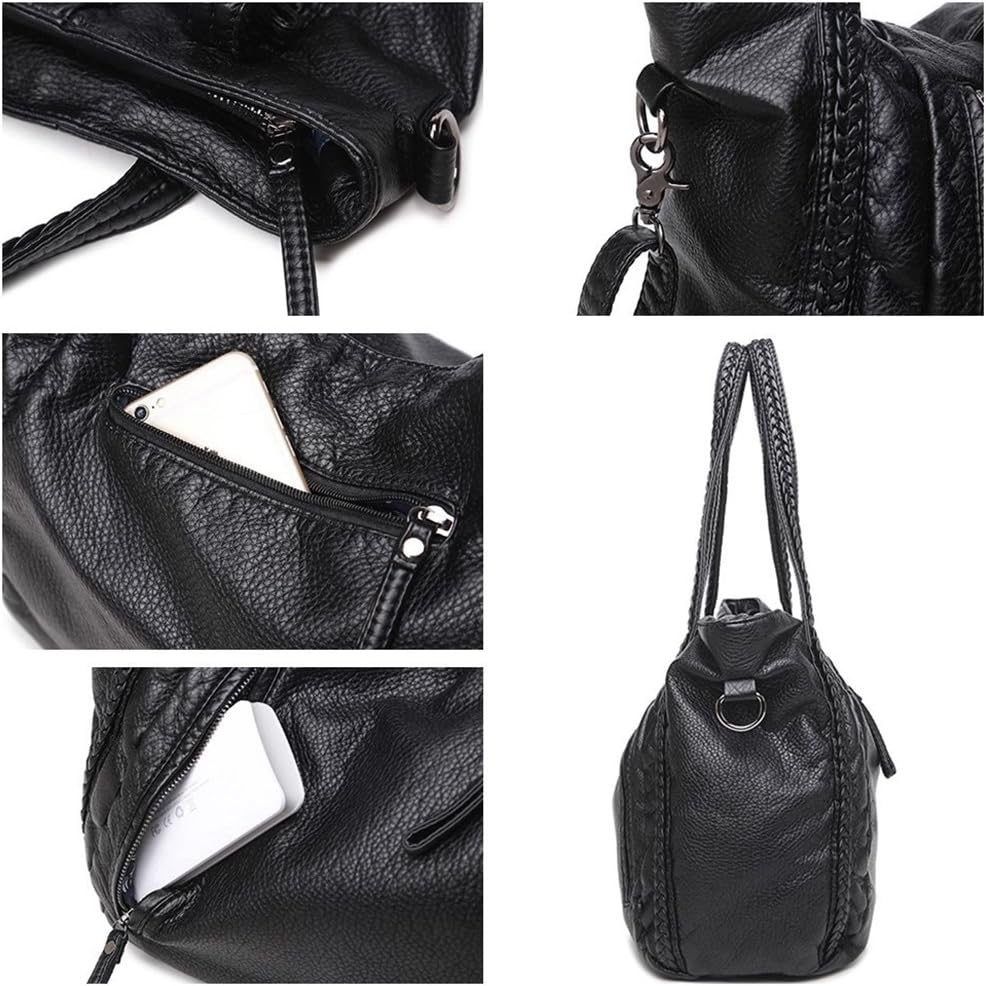 Black Soft Leather Shoulder Purses for Women Large Size Tote Handbags Slouchy Hobo Bags Big Capacity Trendy Shoulder Purse