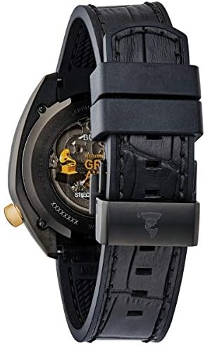 As the official Timepiece Partner of The GRAMMYs®, Bulova has created the GRAMMY® Automatic watch. The distinct timepiece features an open dial and exhibition case back, showcasing the fine 21-jewel skeletonized Automatic movement with a 42-hour power reserve. Black IP stainless steel case with gold-tone guitar tuning peg-shaped crown at the four o’clock position. A gold Grammium dial ring surrounds the black skeleton dial, guitar pick and fret inspired markers, and the “Circle of Fifths” dial design. Iconic GRAMMY® logo imprinted on the case back. Black leather strap with a rubber interior and double-press deployant closure, flat Sapphire crystal with blue anti-reflective coating. Water resistance to 100 meters.
