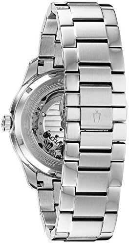 Stainless steel screw-back case, textured blue three-hand dial with silver-tone Roman numerals/markers and round dial aperture offering a glimpse of the self-winding 21-jewel heartbeat movement with 60 hours of reserve power, domed sapphire crystal with blue anti-reflective coating, stainless steel bracelet with push-button deployant clasp, and water resistance to 100 meters. Diameter: 42mm Thickness: 12.7mm