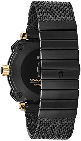 Screw-back case with grammy logo stamp on back, calendar feature and sweeping second hand, anti-reflective sapphire glass