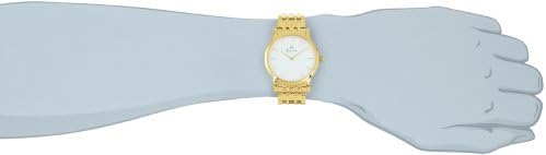 From the Dress Collection. In stainless steel with gold ion-plated finish, patterned silver-white dial, slim profile case, secure double-pusher fold-over buckle and water resistance to 30 meters. Duet: 97L116