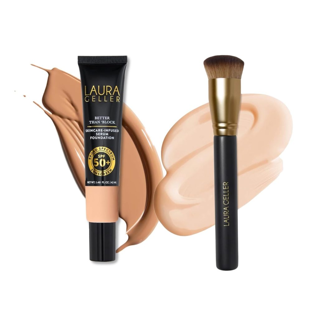 LAURA GELLER Better Than ‘Block + Foundation Brush – Skincare-Infused Serum Foundation Broad Spectrum SPF 50+, medium …