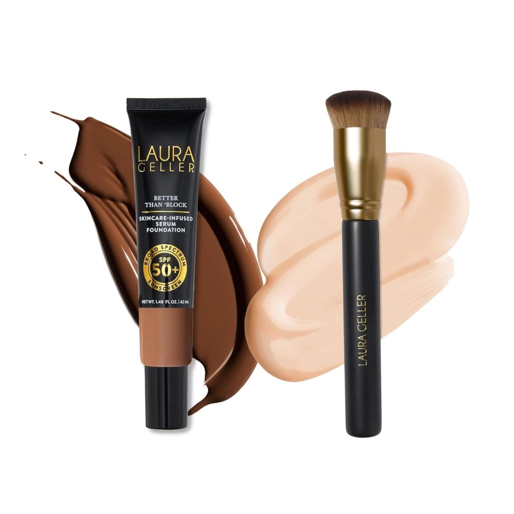 LAURA GELLER Better Than ‘Block + Foundation Brush – Skincare-Infused Serum Foundation Broad Spectrum SPF 50+, deep …
