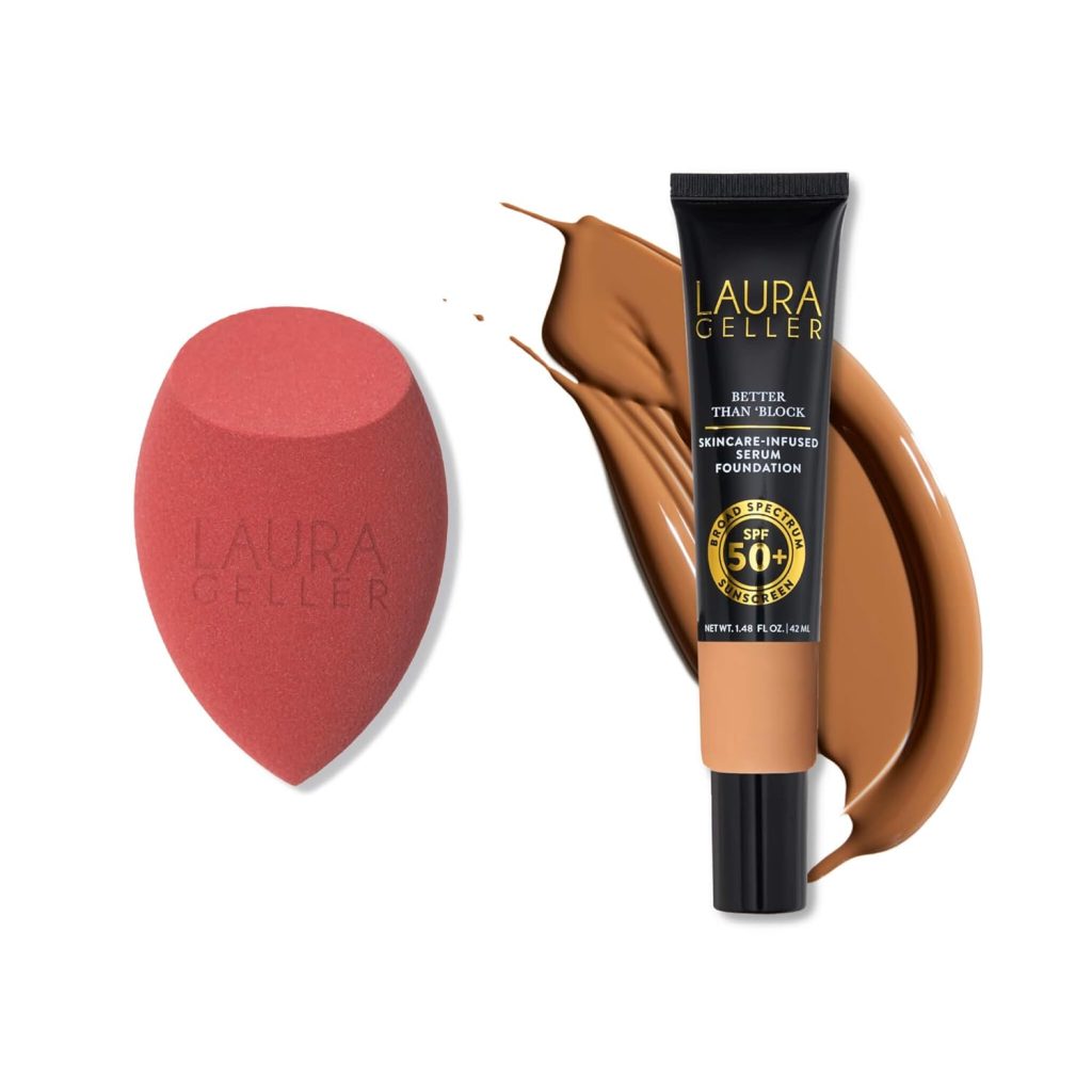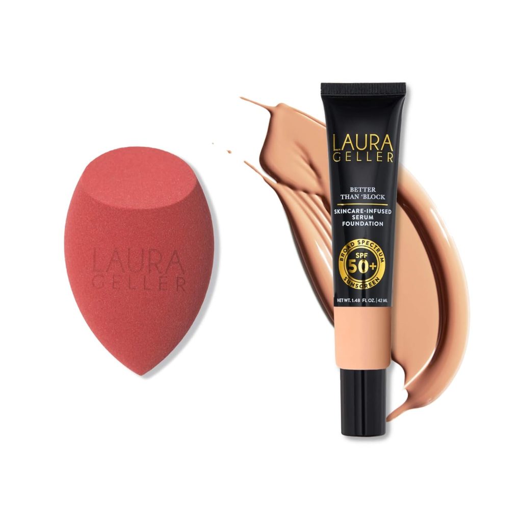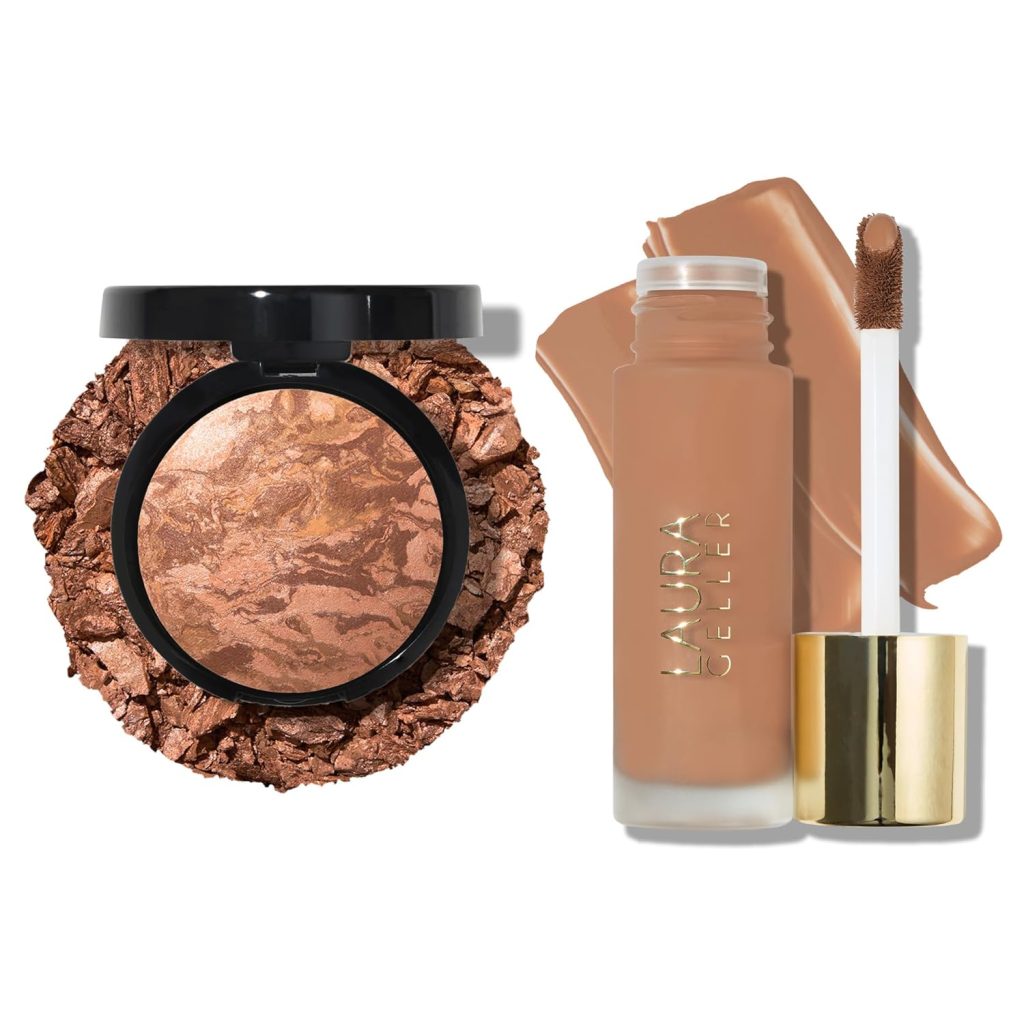 LAURA GELLER Baked Balance-n-Brighten Foundation with Retractable Airbrush Kabuki Brush Makeup Set, Porcelain (2 PC) …