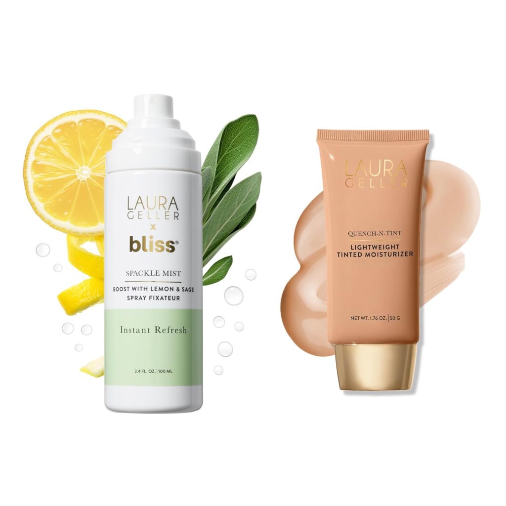 LAURA GELLER Spackle Mist Lemon & Sage + Quench-n-Tint: Dewy Makeup Setting Spray + Quench-n-Tint Foundation, Light