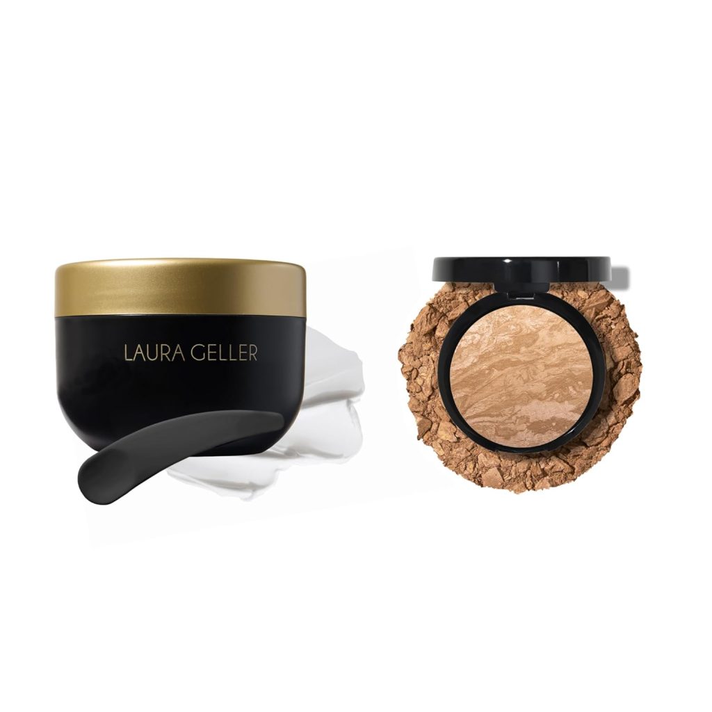 LAURA GELLER Double Take Powder Foundation, Toffee + Cold Cream Cleanser