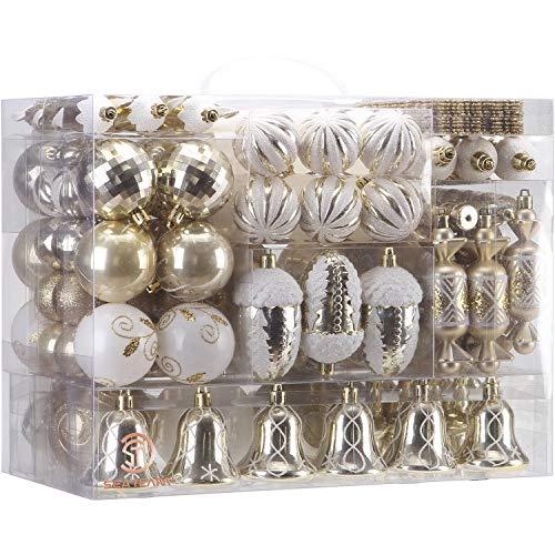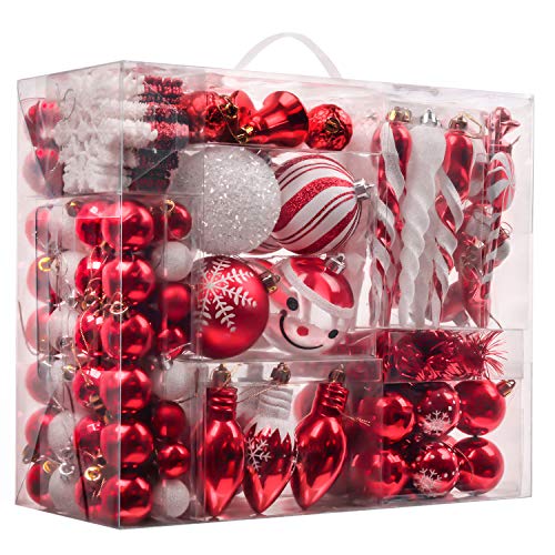 Valery Madelyn 155ct Traditional Shatterproof Christmas Ball Ornaments Decoration Red and White,1.2Inch-7.09Inch,Themed with Tree Skirt(Not Included)