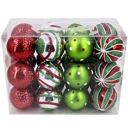 Product Features Material:Plastic Ornament 1.21inch-7.09inch/3CM-18CM Christmas Ball Ornaments. Traditional Red and White Theme:Trimmings with Joy signs in red…