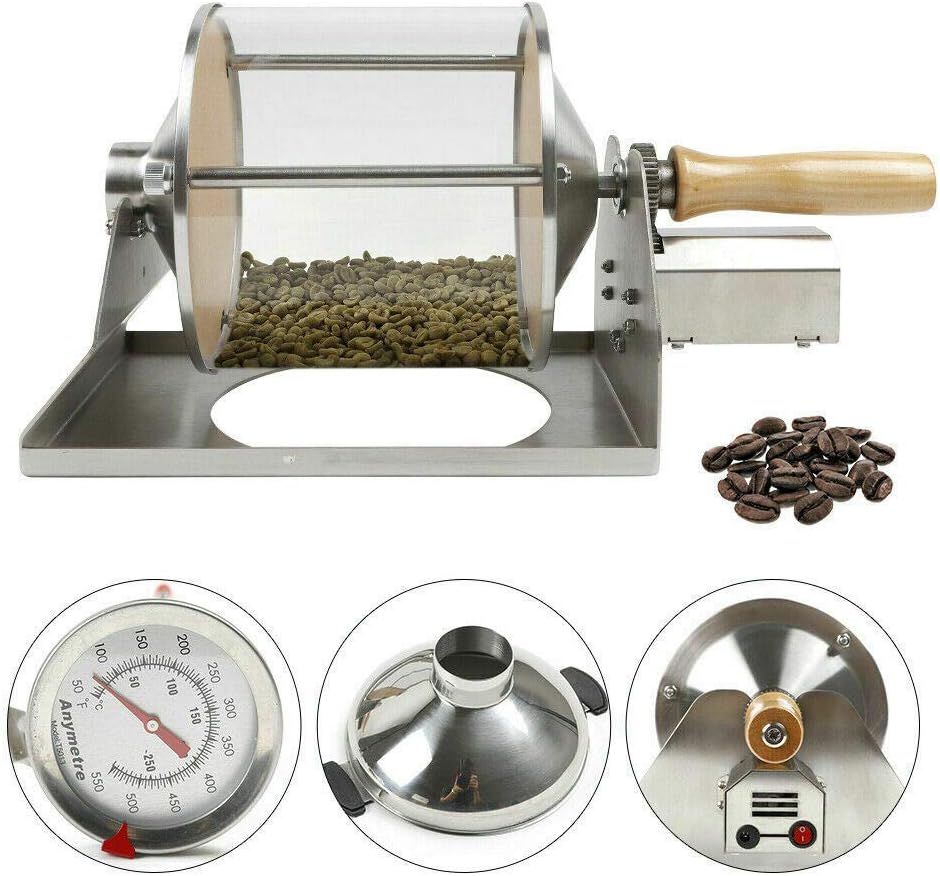 Coffee Bean Baking Machine 500g Capacity Upgraded Electric Coffee Bean Roaster 0-240°C Temperature Adjust for Cafe Shop Nut Peanut Black Bean Soybeans 110V 800W