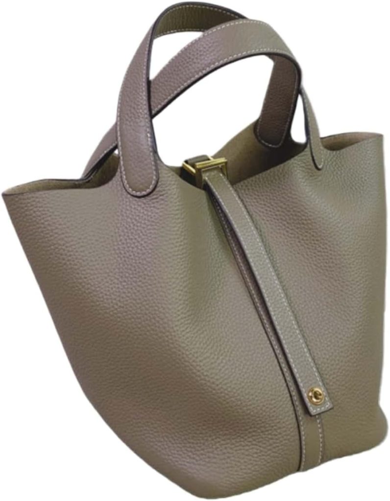 This genuine leather bucket bag is a fashionable and versatile shoulder handbag that exudes sophistication.Crafted from high-quality vegetable-tanned…