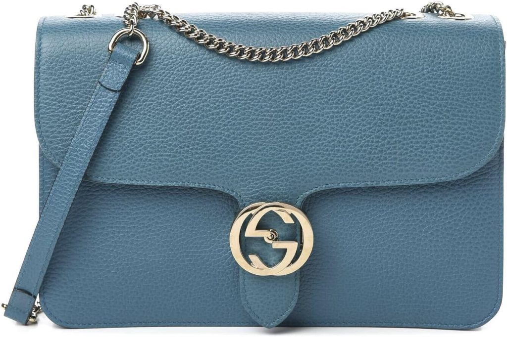 Gucci BLUE Emily deep cobalt Interlocking Chain Leather Shoulder Bag Itay NEW Is Discontinued…