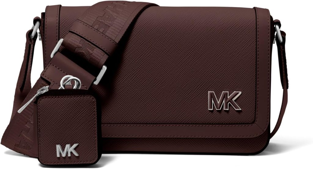 Michael Kors Edison Mini Flap Crossbody with Pouch, Black Hardware/Chocolate