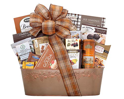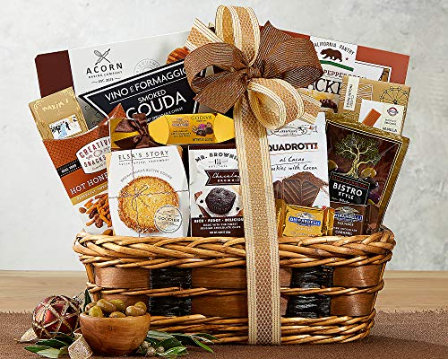 Wine Country Gift Basket Bon Appetit Gourmet Food Gift Basket Perfect Gift Chocolate Ghirardelli Godiva Brownie Brittle Snack Mix Cookies Snack Filled Woven Reusable Basket For Him or Her