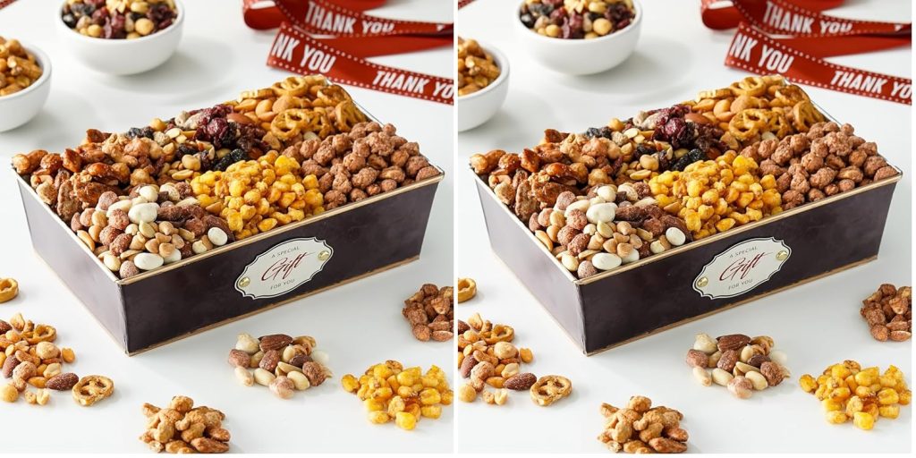 Delight any recipient with this edible nuts gift basket treat assortment: beautifully packaged and ready for gifting. The…