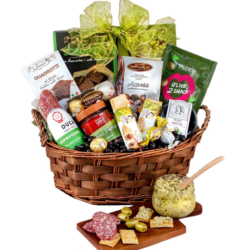Gourmet kosher food gift basket filled with products from around the world. Manufacturer …