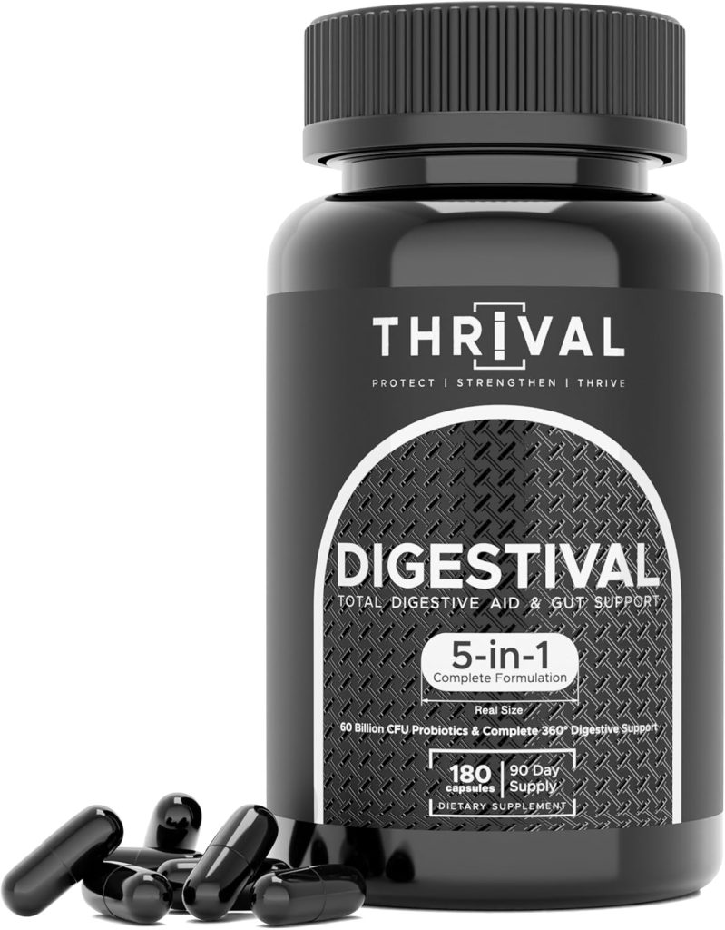 DIGESTIVAL 5-in-1 Gut Health Formula: Probiotics, Prebiotics, Enzymes, Gut Healing & Bloat Relief with 53 Ingredients, 60 Billion CFU, and Advanced Support for IBS, Leaky Gut, and Digestive Wellness