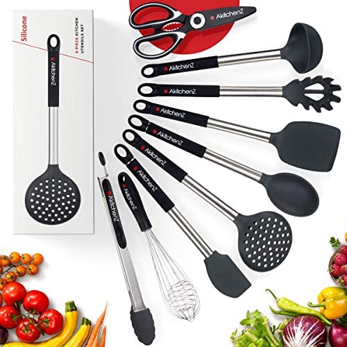 KitchenKitchen Utensil Set -9 Kitchen Tool Set Silicone and Stainless Steel Utensils Heat Resistant Utensils Set Spatula Whisk Tongs Cooking Utensil Set Spoon Utensils Shears Best Kitchen ToolsBy Designer / June 3, 2020