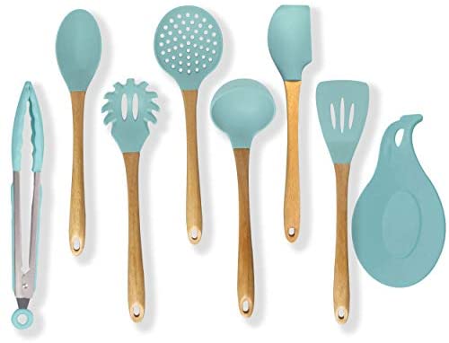KitchenPremium Silicone Cooking Utensils Set, 8 Piece Turquoise Kitchen Utensil – 446°F Heat Resistant, Wooden Handles, Non Toxic Safe Cooking Tools for Non-stick Cookware, Modern Serving Gadgets (BPA Free)By Designer / June 3, 2020
