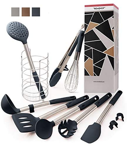 KitchenREMIHOF Silicone Kitchen Utensil 9-Piece Set of Nonstick Silicone and Stainless Steel – Spatula Turner Ladle Pasta Server Whisk Tongs with Holder – Best Culinary Gift Set (9 PCS, DarkGrey)By Designer / June 3, 2020