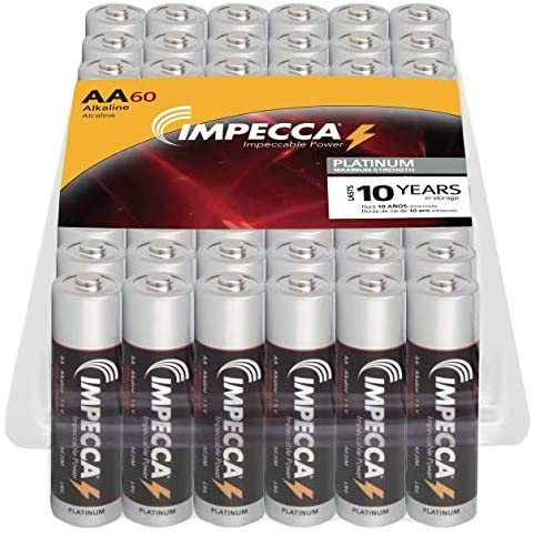 Prime PantryIMPECCA AA Alkaline Batteries, 60 Pack High-Performance, Long Lasting, and Leak Resistant, Premium LR6 Battery, Platinum Series, Recloseable Package, 60 CountBy Designer / June 6, 2020