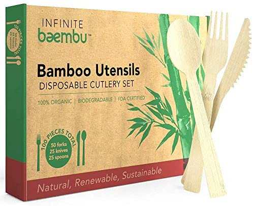 Prime Pantry100% Bamboo Disposable Cutlery Set – Superior to Wooden Cutlery | Eco Friendly, Compostable Biodegradable Bamboo Utensils | Eco Convenience At Its Best |100PK (50 Forks, 25 Spoons, 25 Knives)By Designer / June 6, 2020