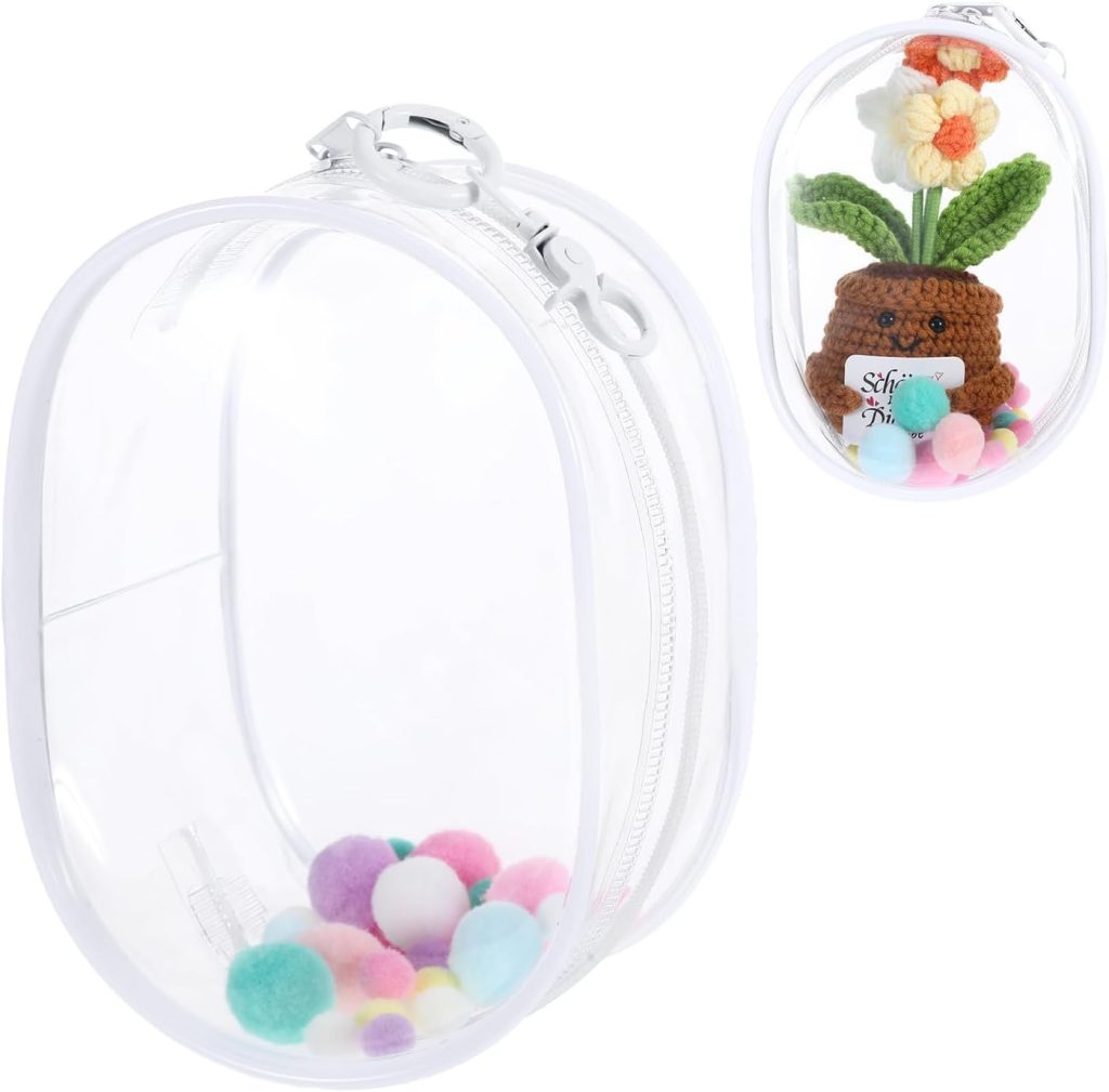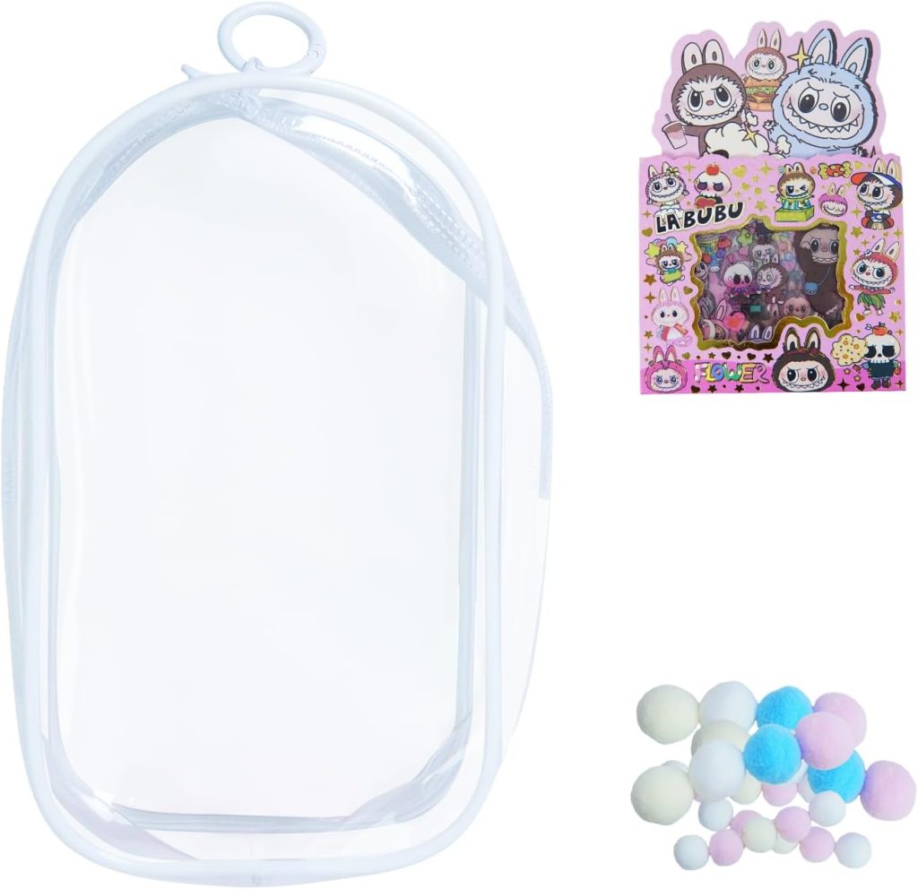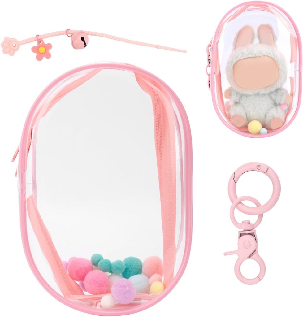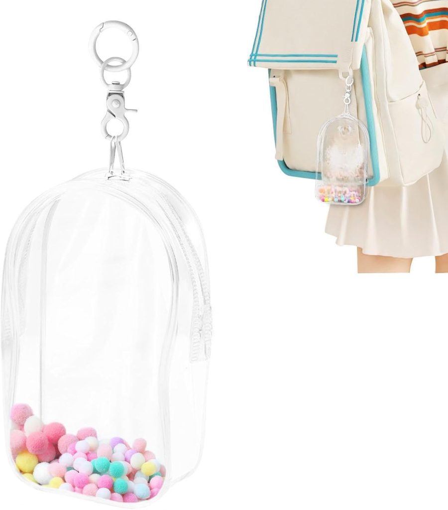 Clear Figure Display Bag with Keychain, White Waterproof Mini Backpack Pouch Blind Box Keychain Lipsticks Carrying Case, Organizer Zipper Pouch Positive Doll Storage Bag for Collectibles