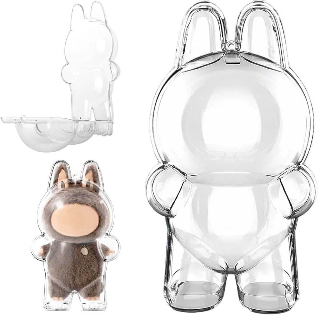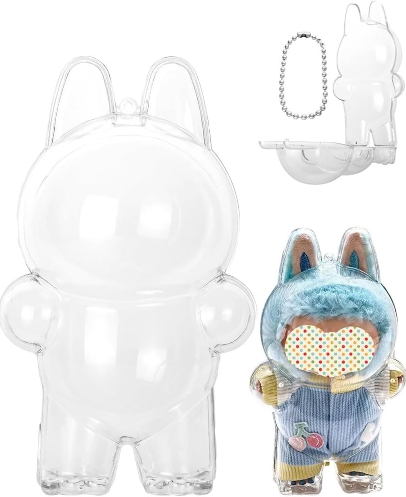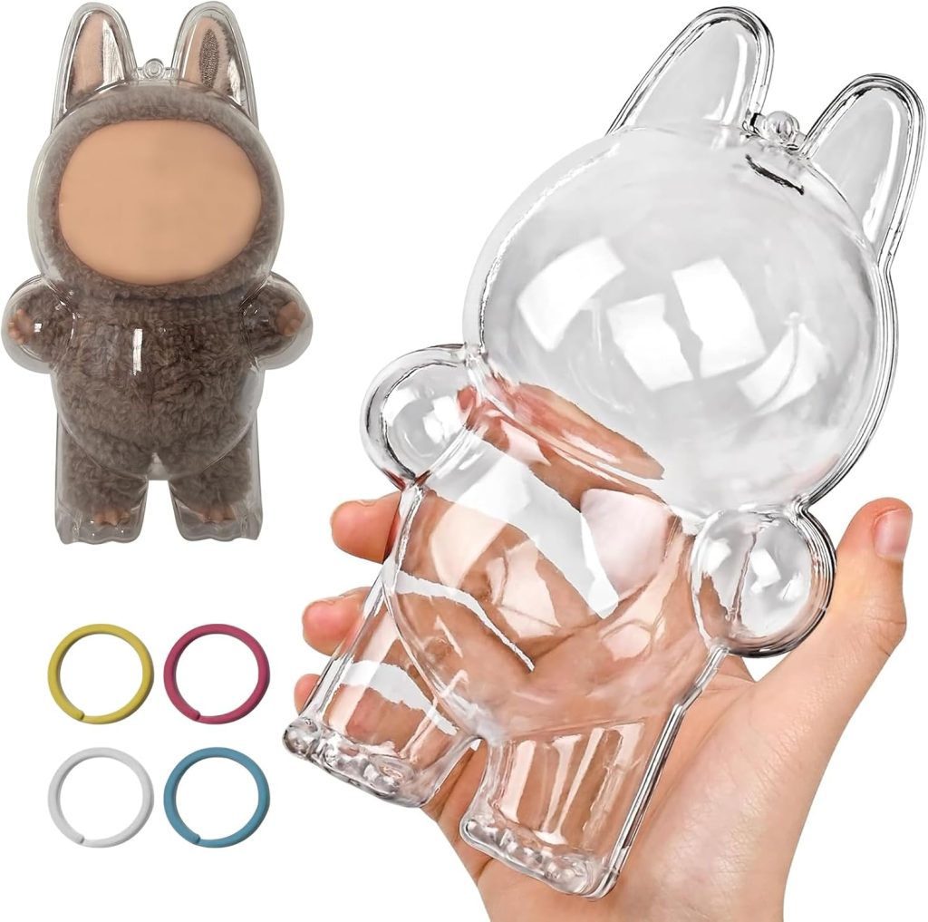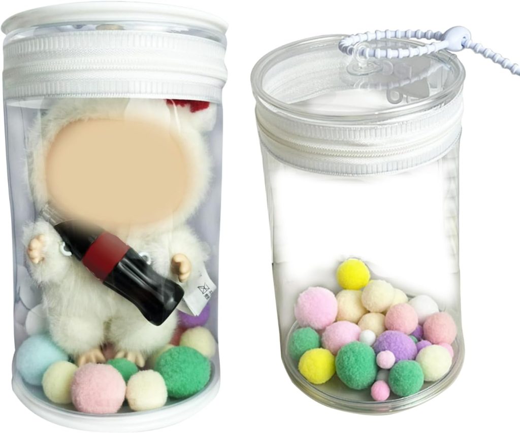 Clear Figure Display Bag with Keychain, White Waterproof Mini Backpack Pouch Blind Box Keychain Lipsticks Carrying Case, Organizer Zipper Pouch Positive Doll Storage Bag for Collectibles