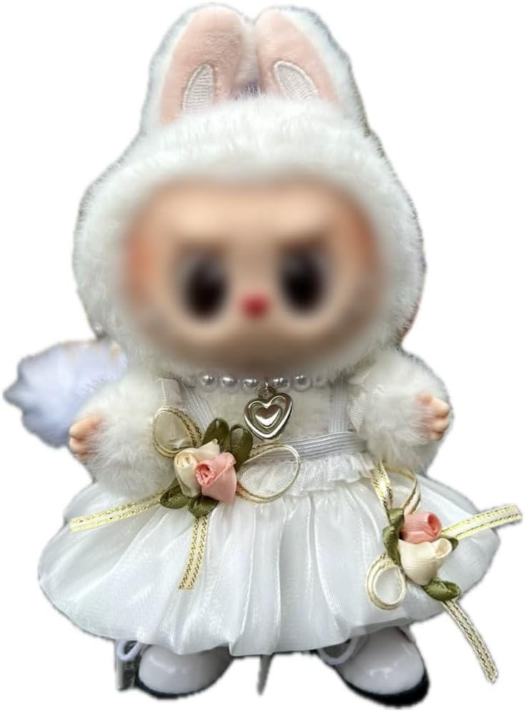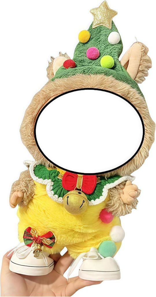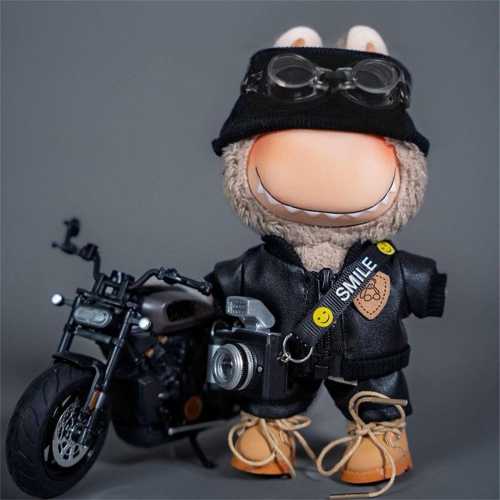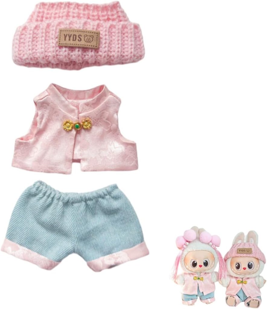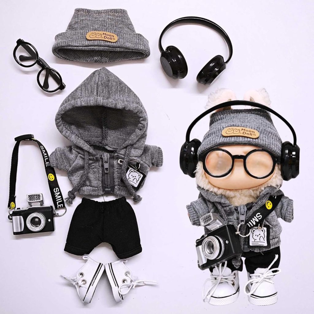 Cowboy Outfit for LABUBU Dolls – 4-Piece Western Set with Denim Hat, Plaid Scarf, One-Piece Jumpsuit & Brown Boots – Doll Clothes Accessories Only