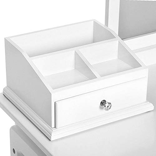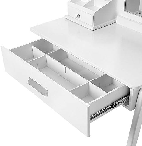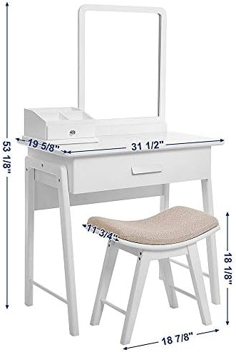 the pretty vanity table set perfectly serve as a dressing table for your makeup and keep your cosmetics organized,The table once installed it does not wobble easily and ideal for a long time use.
