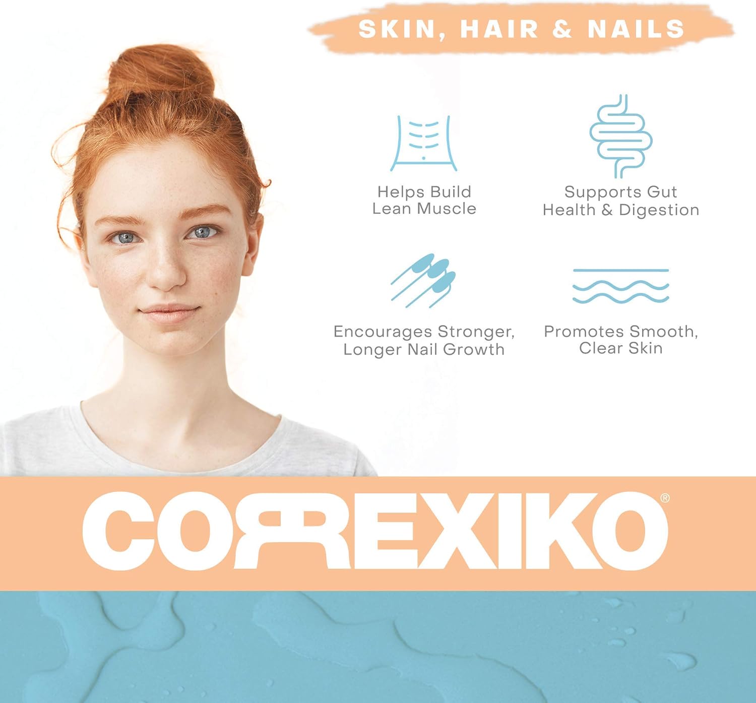WHY CHOOSE CORREXIKO’S COLLAGEN: Correxiko is founded by a British medical Doctor with over 30 years of experience researching the benefits of Marine Collagen. All of our collagen supplements are formulated to the highest medical standards with each ingredient carefully chosen for its skin health properties and ability to work in synergy with your body’s natural collagen production.