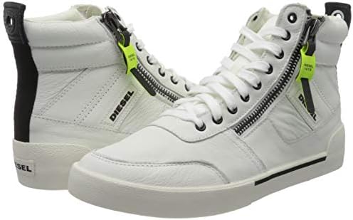 A reinterpretation of a Diesel signature sneaker. The d-velows features a smooth leather upper, Lateral side zipper, and color contrast pull tab on a vulcanized outsole.