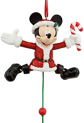 Adorable Disney Parks Exclusive Santa Mickey Mouse Ornament. Pull Mickey’s puppet string to see his arms and legs jump for joy. This sculptured ornament is fully articulated, giving Mickey Mouse something to dance about. Sparkling glitter Santa suit makes him extra festive.