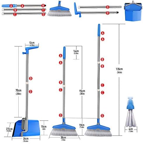 Long Handle Broom and Dustpan Set- The 54” long handle allow you to stand upright when you are cleaning,which would protect your back and waist,no need to bend frequently