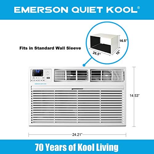 SMART-FIT SIZING: With dimensions of 20. 3” D x 24. 2” W x 14. 5” H, this Emerson Quiet Kool through the wall air conditioner was designed with Smart-Fit dimensions, meaning it will fit any 24. 5” to 27” wall sleeve you have. Included foam insulation with help you retro-fit your sleeve to this new design. Don’t have a sleeve? Remember to check the dimensions prior to purchasing.