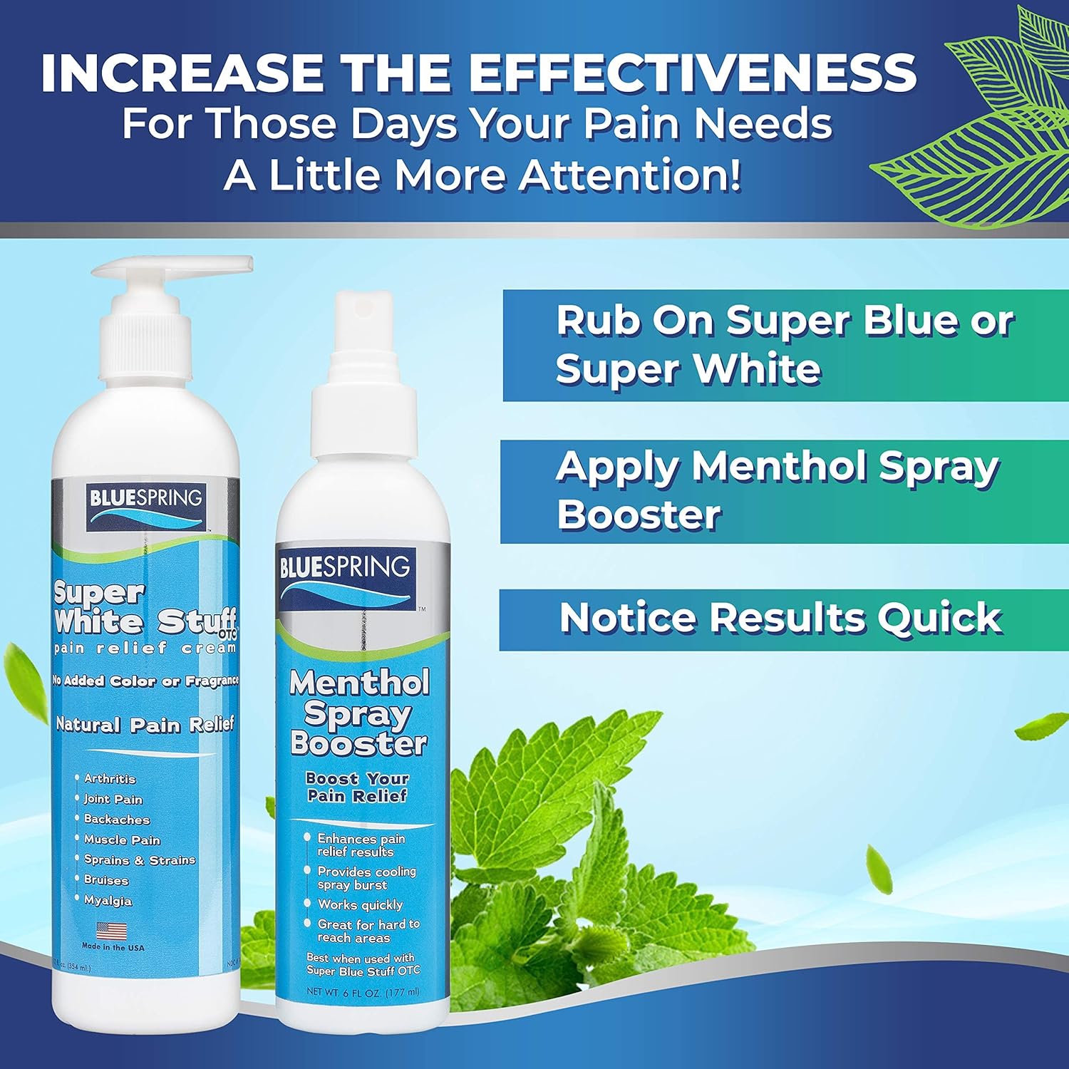 BLUESPRING’s Super White Stuff OTC offers all of the fast-acting pain relief ingredients in our Blue which aid in lessening general discomfort and does it in as fast as 5 minutes after use!