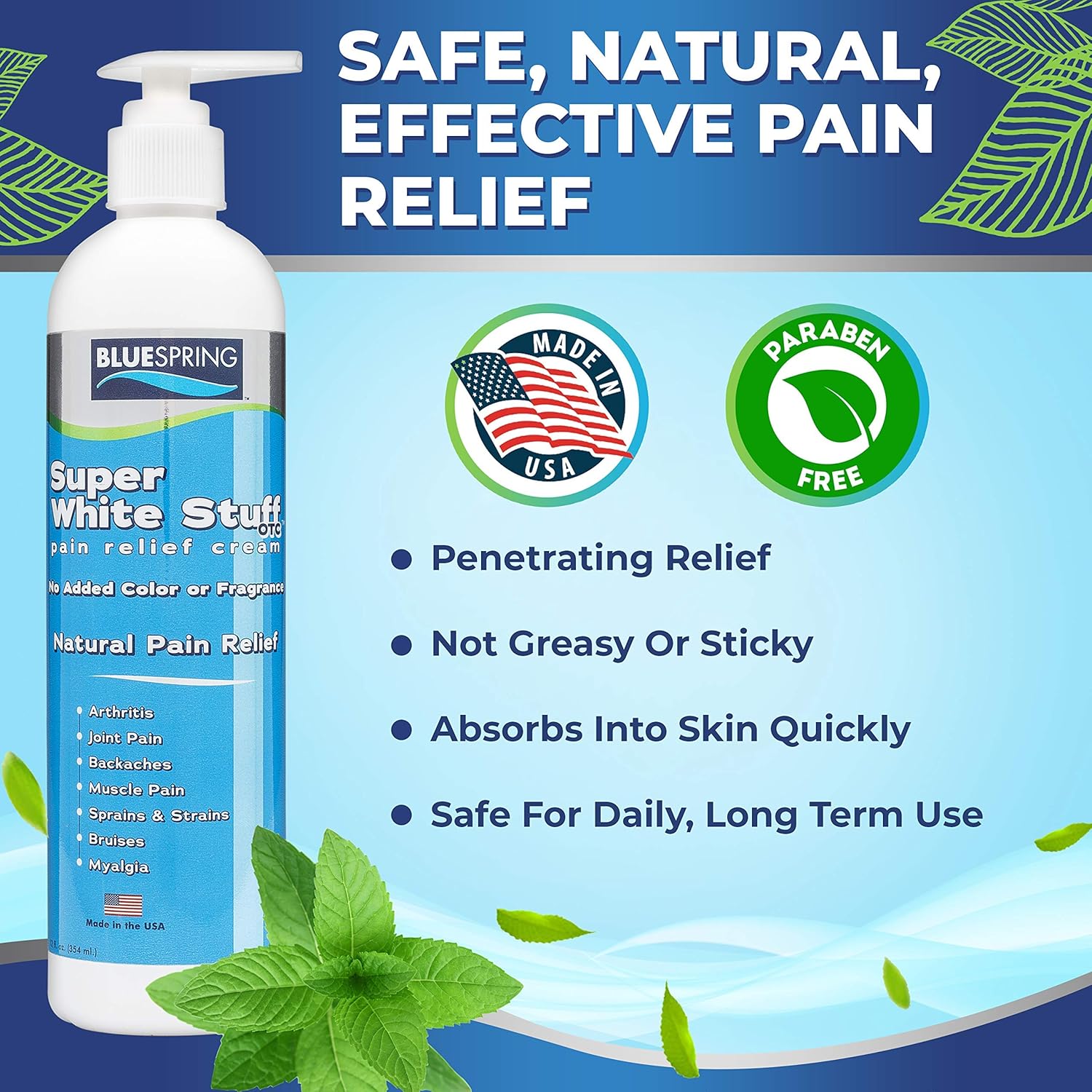 Super White Stuff Super White Stuff OTC alleviates the pain of constant aches from muscle pain, backaches, arthritis, and more. Similar to Super muscle pain, backaches, arthritis, and more. Similar to Super Blue Stuff OTC Super White OTC was developed for sensitive skin and contains no added color or fragrance