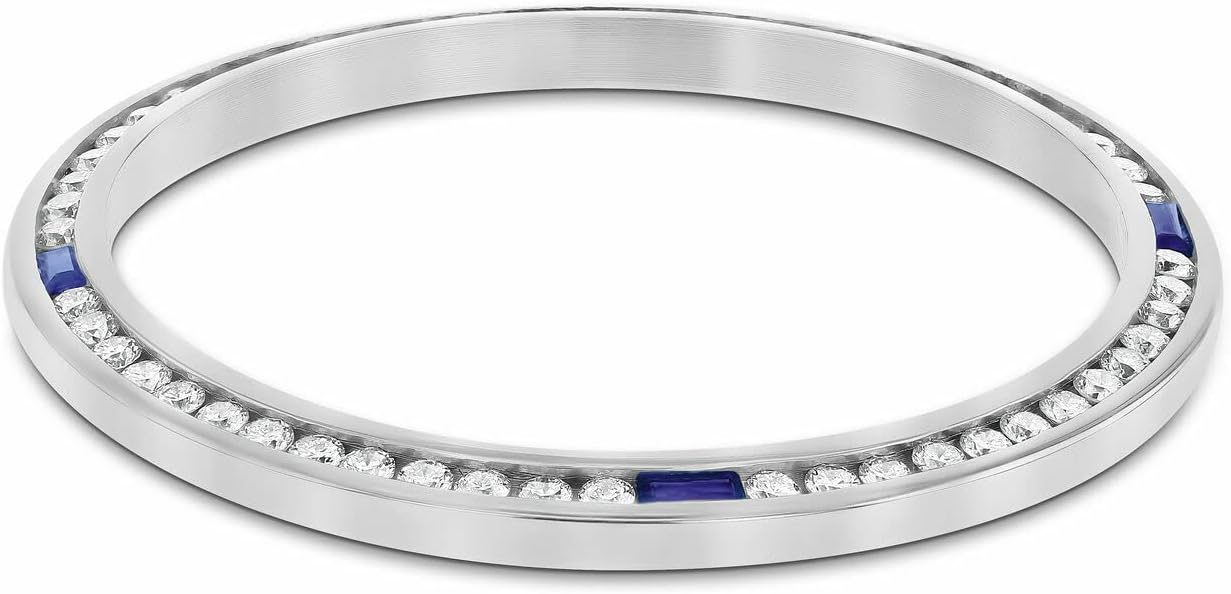 This Sapphire & Diamond Bezel is made from 18K Real White Gold (Not Plated or Filled) and features Natural Mined Diamonds, set in a Channel configuration. The 1.30CT of Diamonds are complemented by stunning sapphires, perfect for enhancing your 36mm Rolex Datejust or President model watch.