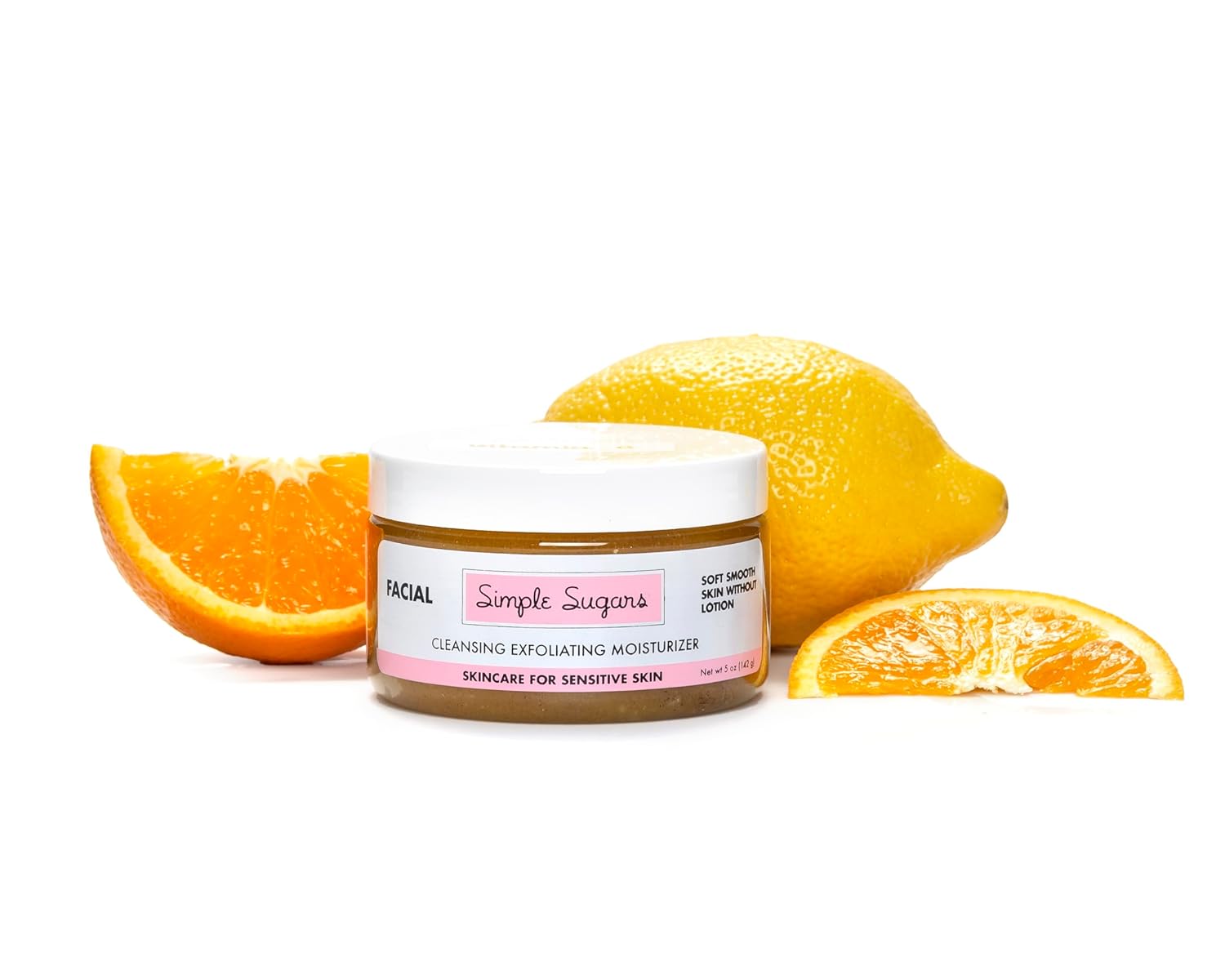 Simple Sugars Skincare Facial Best Sellers Bundle includes 3 best-selling all-natural cleansing exfolating moisturizers especially formulated for sensitive skin. This bundle contains one 5oz Green Tea Facial, one 5oz Strawberry Facial, and one 5oz Vitamin C Facial.