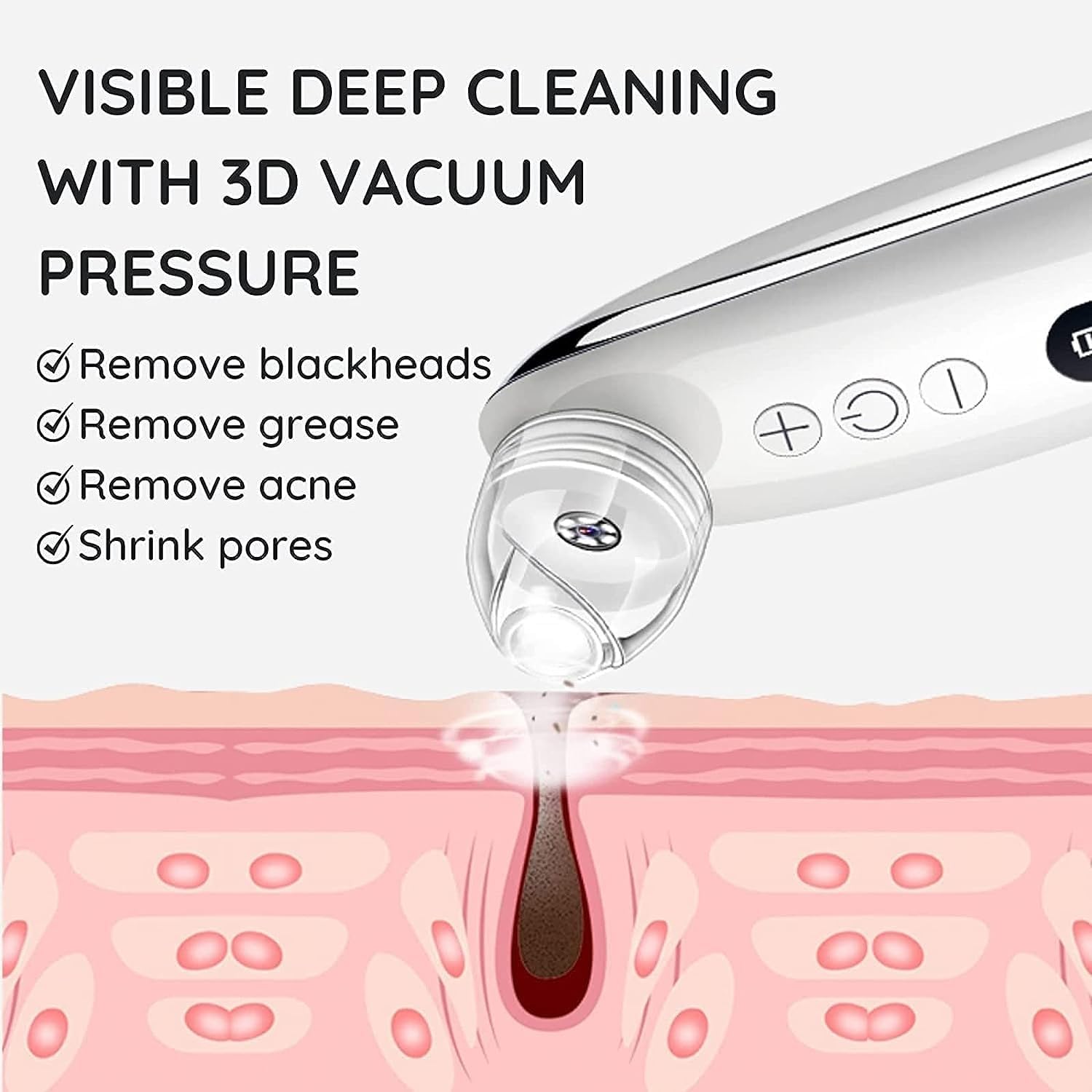 NEWEST BLACKHEAD VACUUM: Super powerful pore vacuum can directly achieve deep cleaning and effectively remove blackheads, whiteheads, dead skin, grease and makeup residues.clean up blackhead, remove dirt grease, reduce dead skin and fine lines .clean your facial pores and witness your beauty transmutation