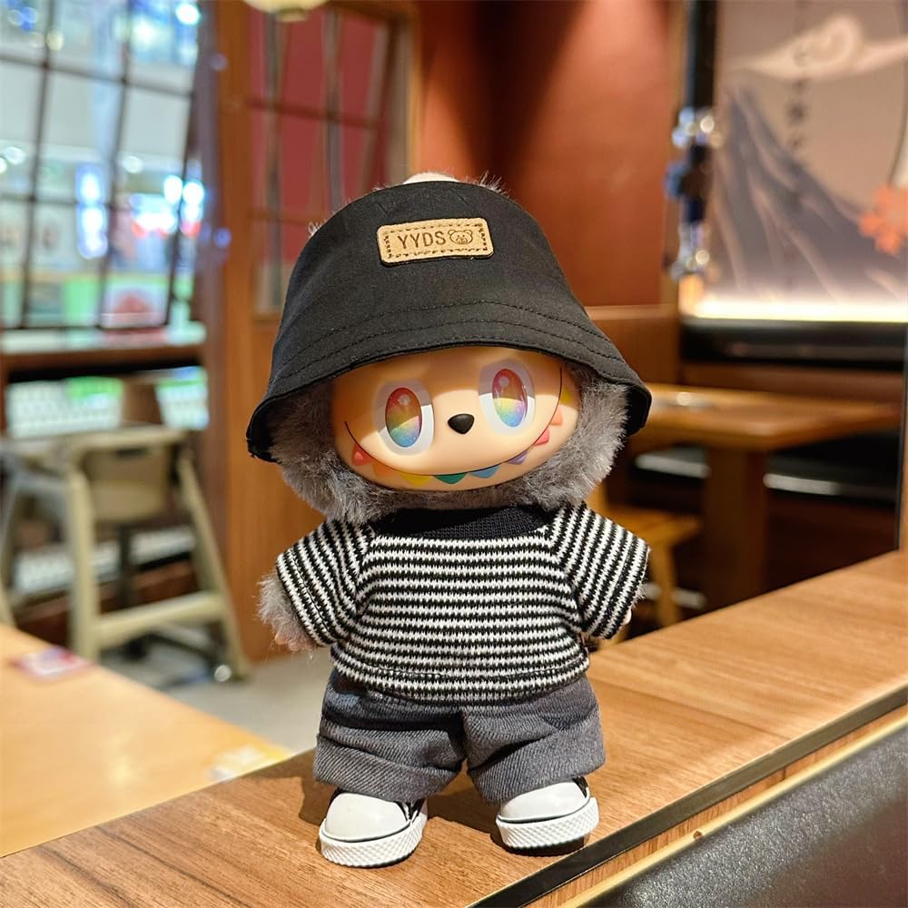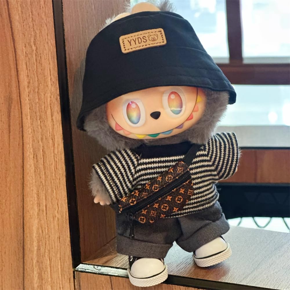 Elevate for labubu figure with this Urban Explorer Set, designed for collectors seeking bold street-inspired looks. The matte-black cap features adjustable sizing, while the contrast-striped tee pairs seamlessly with the multi-pocket utility pouch – all crafted in lightweight cotton-blend fabrics. This coordinated trio captures metropolitan energy perfect for shelf displays or creative photography.