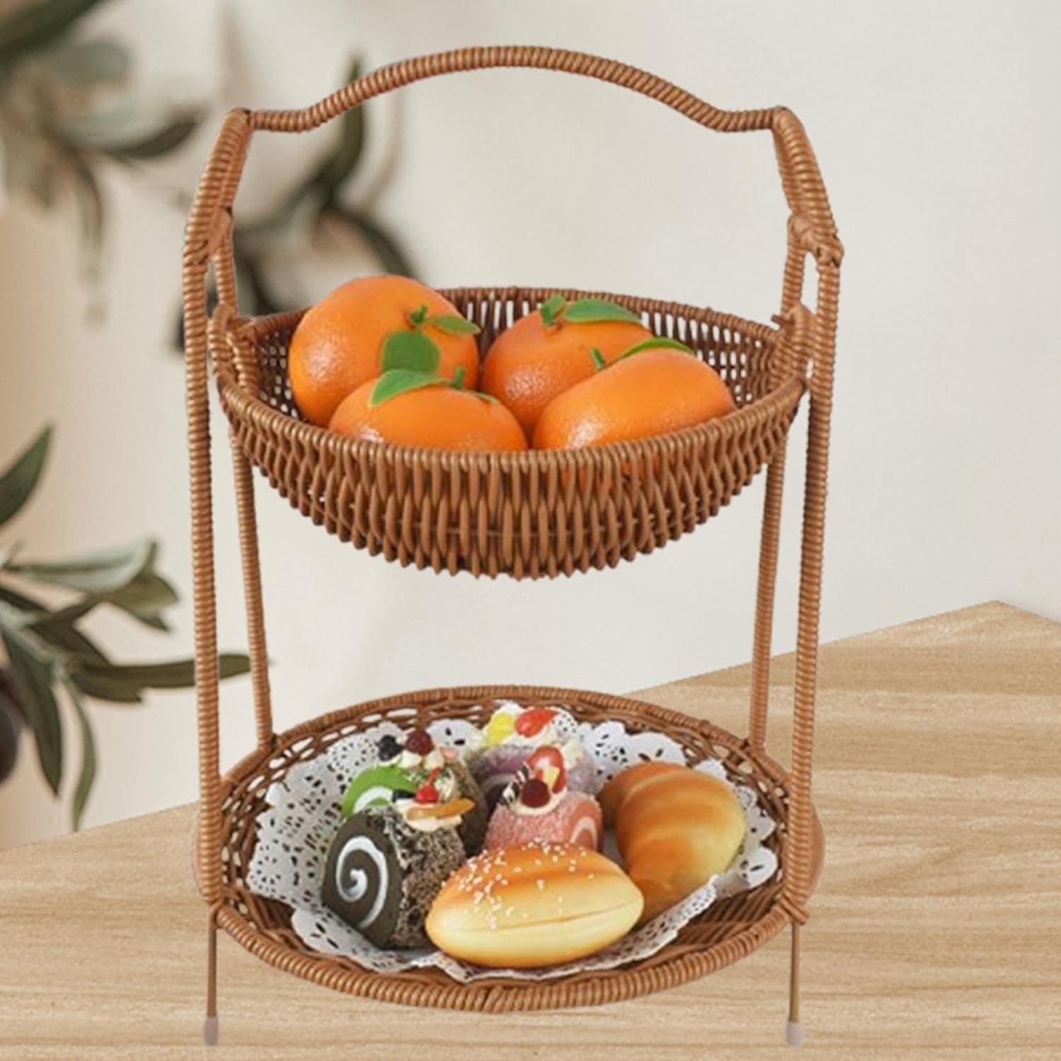【Great Gift】: The two tiered imitation rattan baskets stand is also a wonderful gift choice for families and friends on birthdays, holidays, festivals, etc